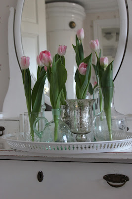 Idag har vi haft en ledig dag tillsammans och vilken dag det har varit! 10 grader varmt och solsken! Inomhus blir det just nu dramatisk skillnad mellan starka ljuset och den kalla skuggan! Jag gör mitt bästa att skapa vår med ny sydda (av snälla mamma) dynor och pärlhyacinter på verandan.